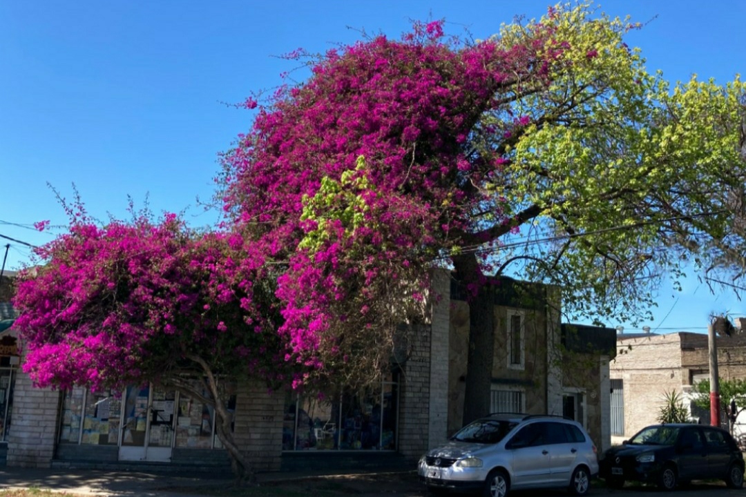 Ese es el primer registro de una flor sumamente reconocible dentro del universo botánico, que colorea miles de rincones de la ciudad, muy distintos entre sí, adueñándose de tapiales, paredes, techos, barandas y con la particularidad de tener una personalidad pluricolorida, con 15 tonalidades diferentes.